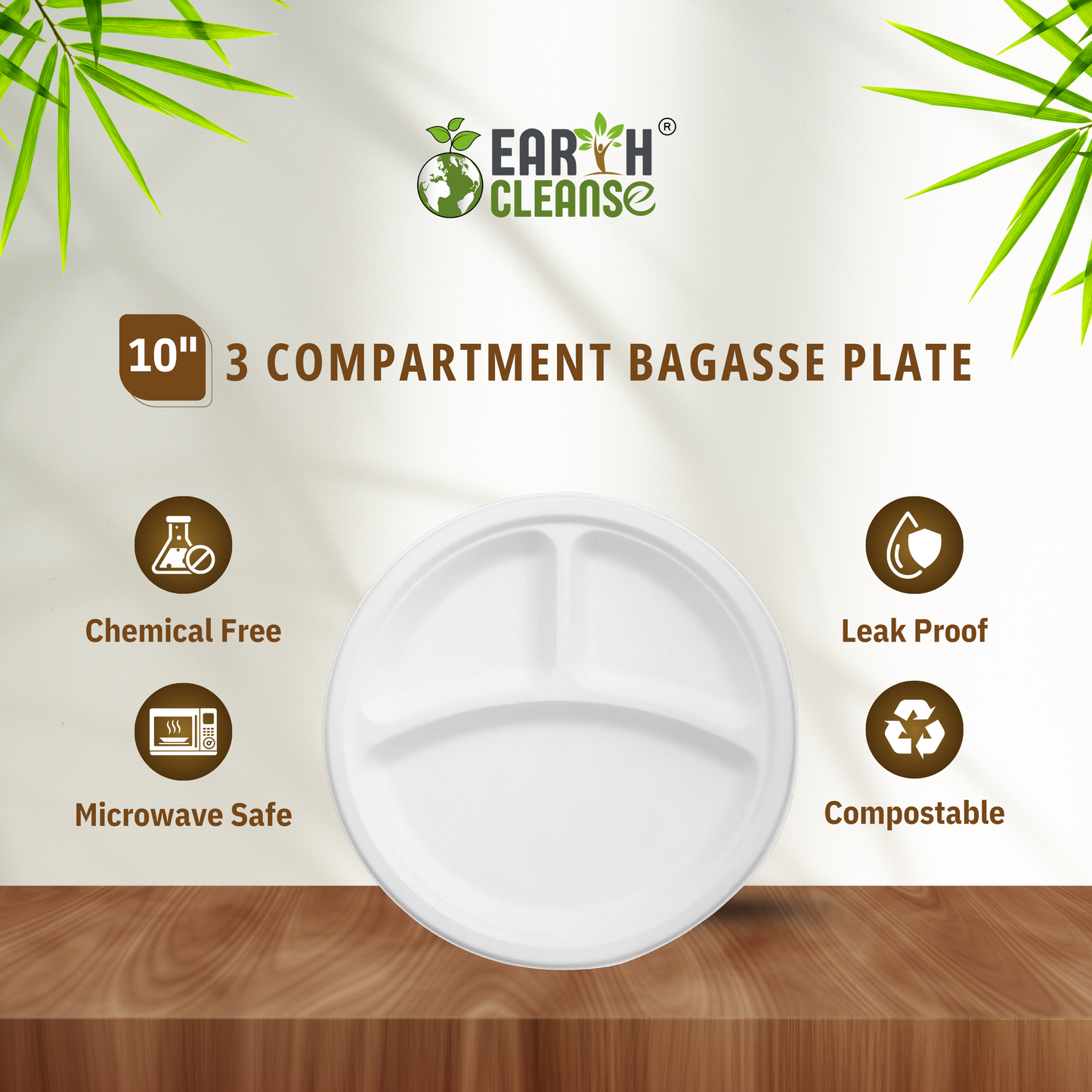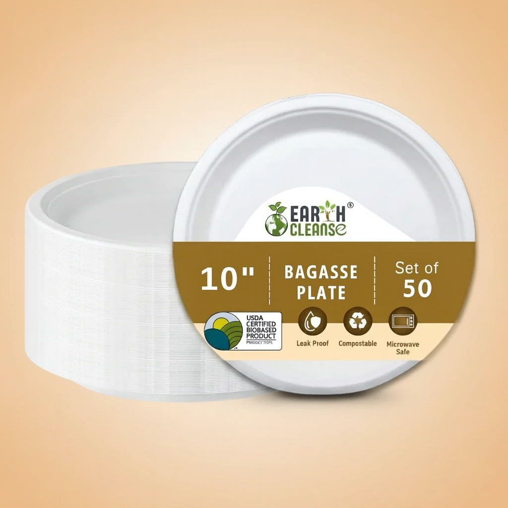 10" 3CP Compostable Sugar cane Bagasse Round Plates