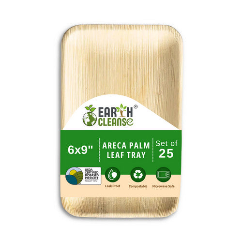 These disposable trays for food are an ideal choice for any occasion, combining convenience with sustainability. Made from environment-friendly Areca palm leaves, these disposable serving trays are biodegradable, offering an alternative to traditional plastic options. The elegant design and sturdy construction make them ideal for a wide range of events, from casual gatherings to more formal settings. Whether you?re hosting a party, wedding, or other special event, these disposable trays for serving food provide a stylish and practical solution. The natural look of the Areca palm leaves mimics the appearance of bamboo wood, adding a rustic touch to your tableware while ensuring that cleanup is as easy as disposing of these disposable serving tray options. Choose these disposable tray options to serve your guests with style.