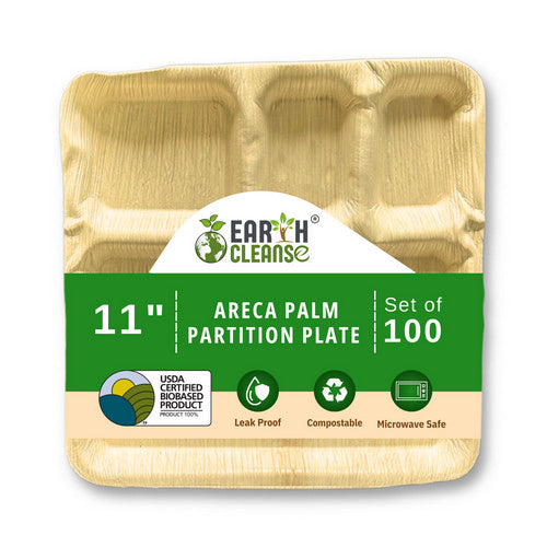 Add Areca Palm Leaf Square Partition Plates 11-Inch Pack of 100 by Earth Cleanse to the cart