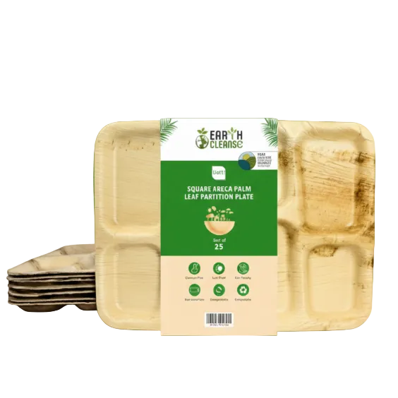 14*10 " 6 Compartment Compostable Palm Leaf Trays