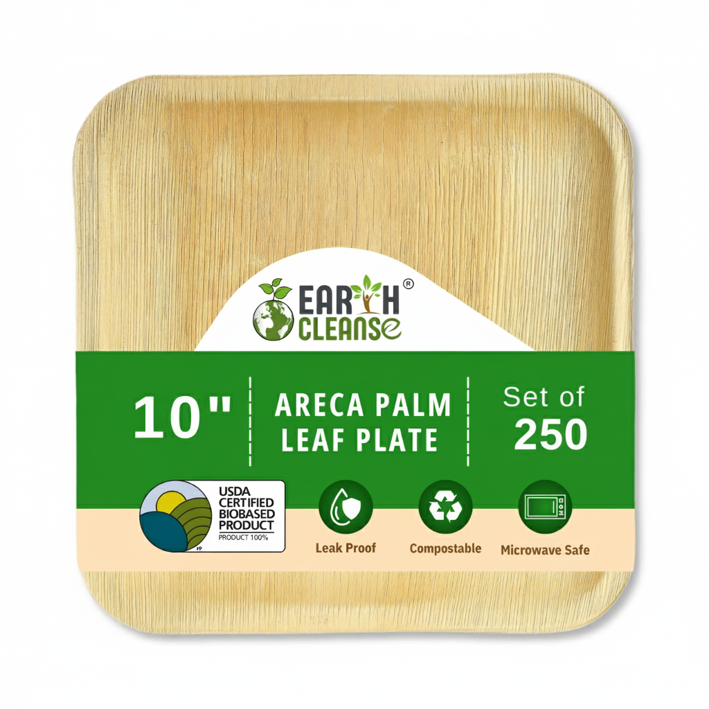 The EarthCleanse 10 Inch Square Compostable Palm Leaf Plates are part of our premium compostable plates and bowls range, thoughtfully designed for eco-conscious food service and modern sustainable living. Strong, hygienic, and naturally elegant, these plates are ideal for homes, catering, hospitality, events, and professional food service operations.
