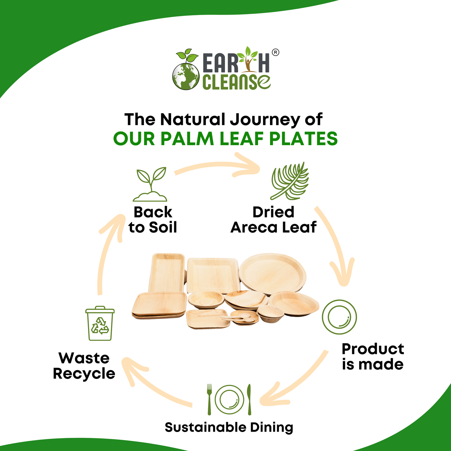 Crafted from naturally fallen Areca palm leaves, each plate is produced without cutting trees or using chemicals. The leaves are carefully collected after natural shedding, thoroughly washed, heat-sterilized, and heat-pressed into shape—ensuring food safety, durability, and environmental responsibility.